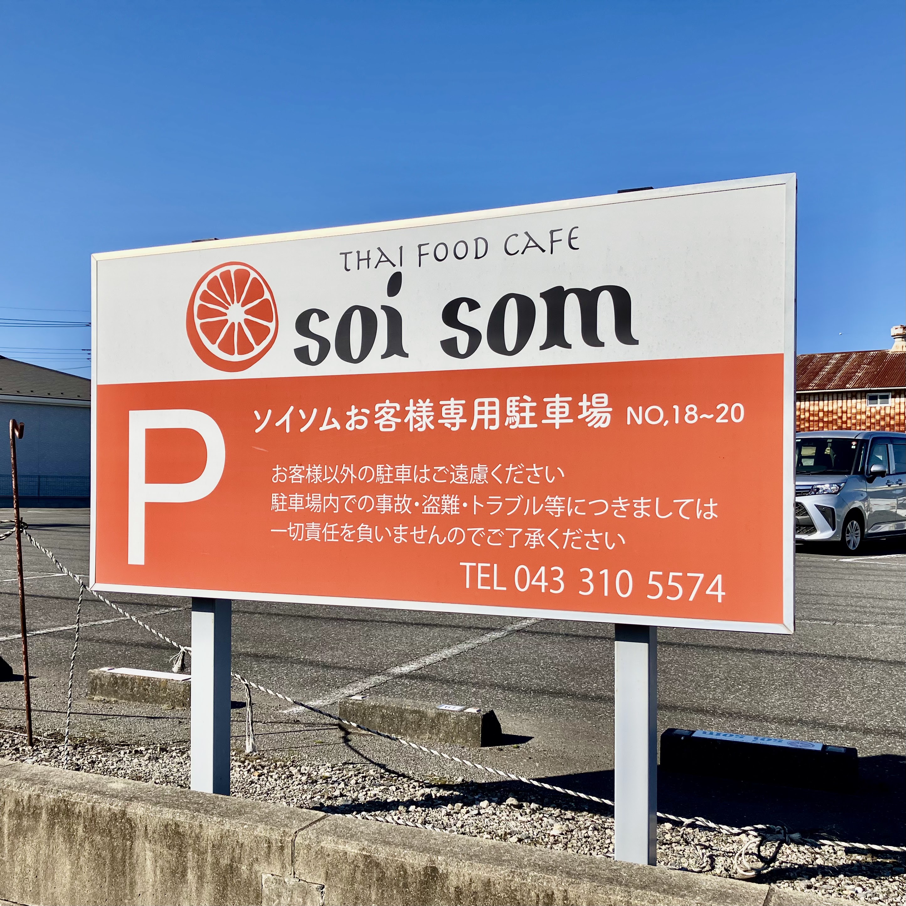 駐車場はソイソム店舗に3台、第2駐車場に3台可能です。