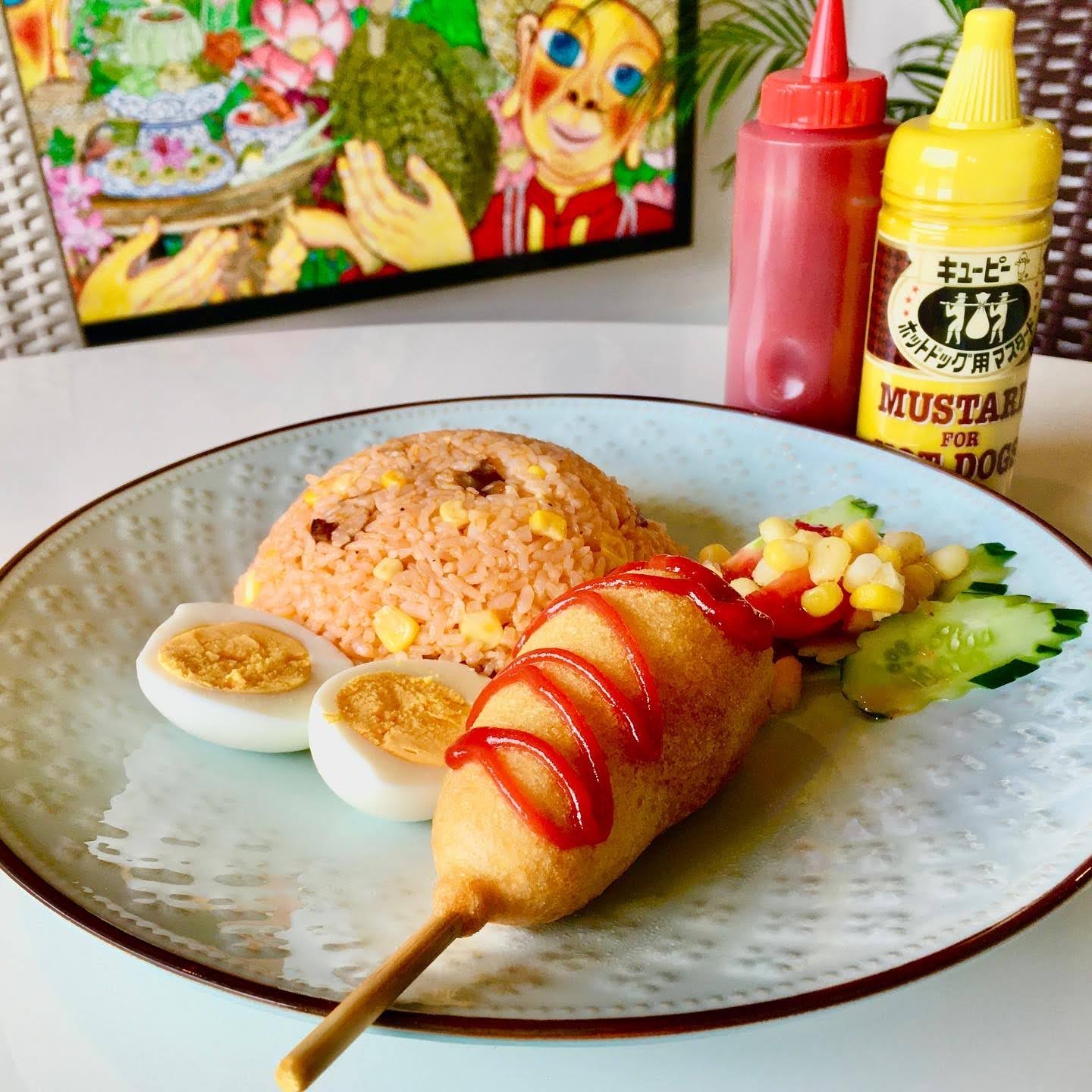 カオパッアメリカ(ケチャップライス+アメリカンドッグ)