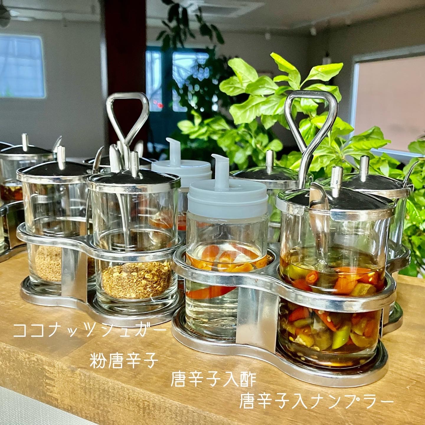 タイの食堂に必ず備わっているのが、クルアン・プルン。単純に調味料って言う意味です。