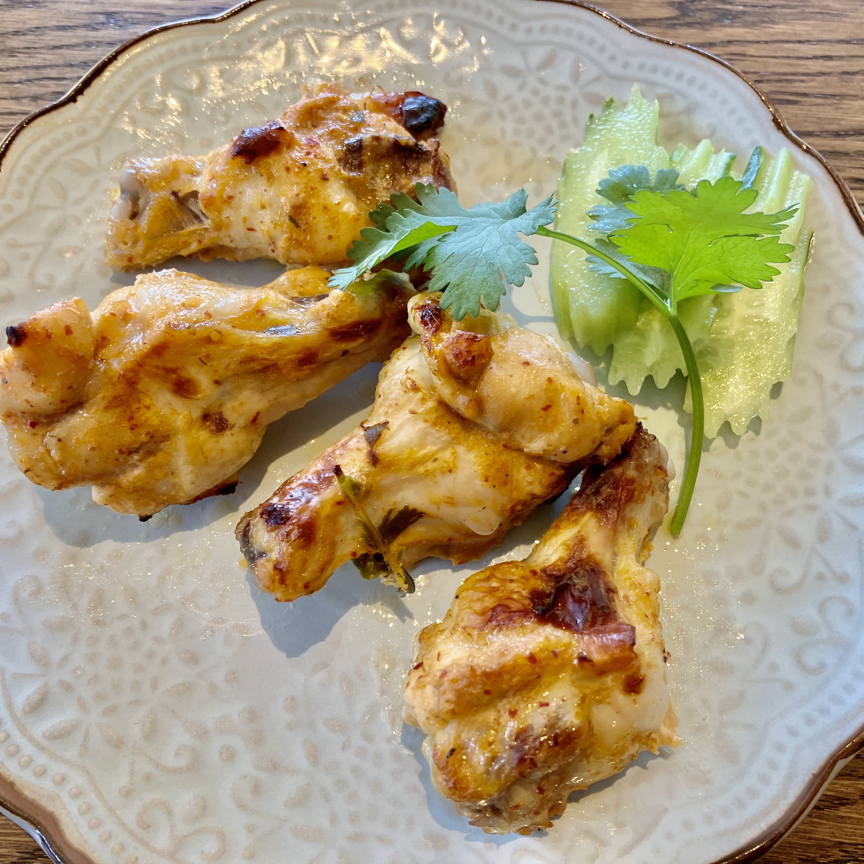 ヨーグルトと各種スパイスに漬け込んだ鶏の手羽元。