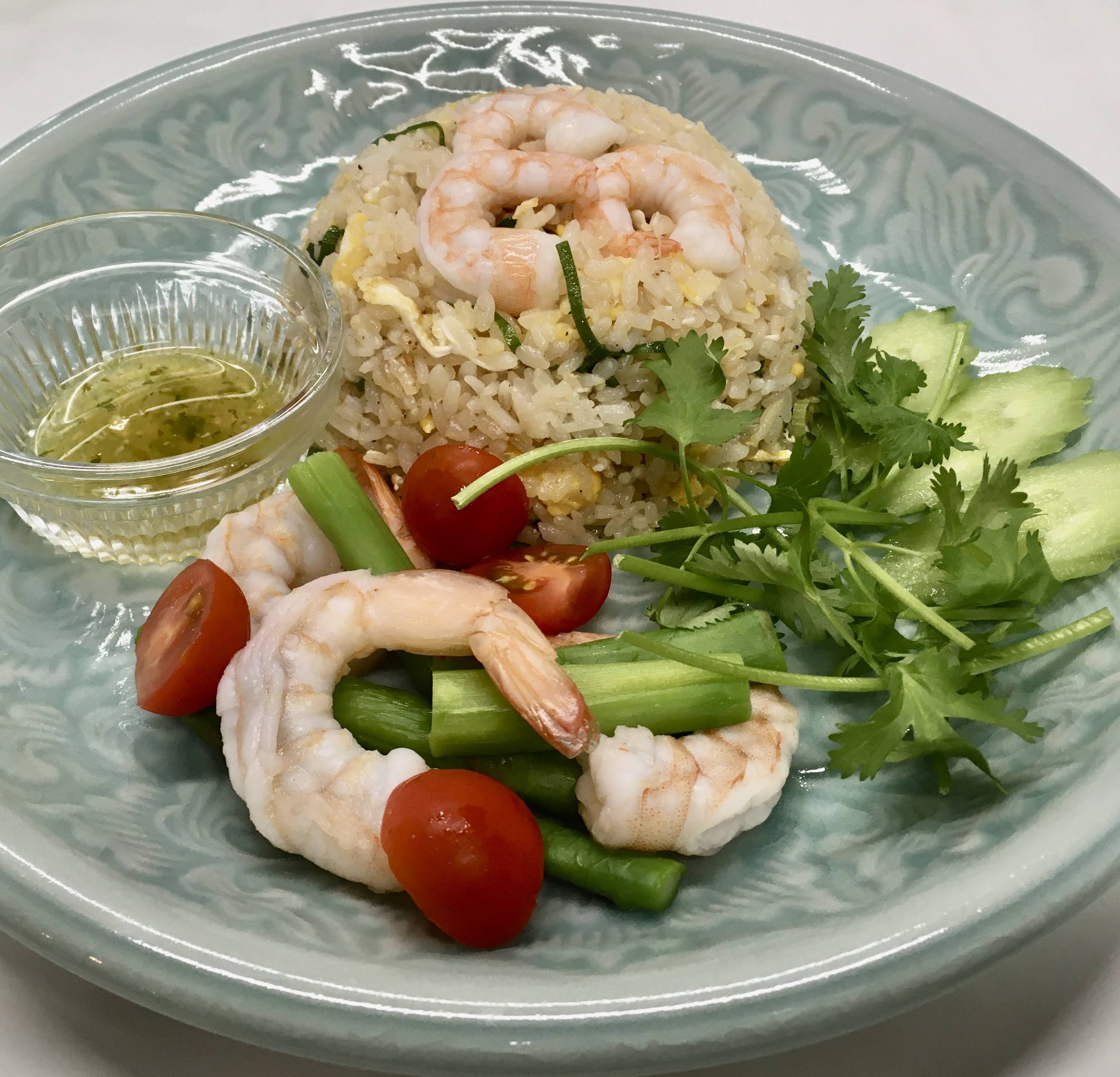 10月、11月のマンスリーメニューは、カオパックン(海老サラダ付き海老炒飯)。
