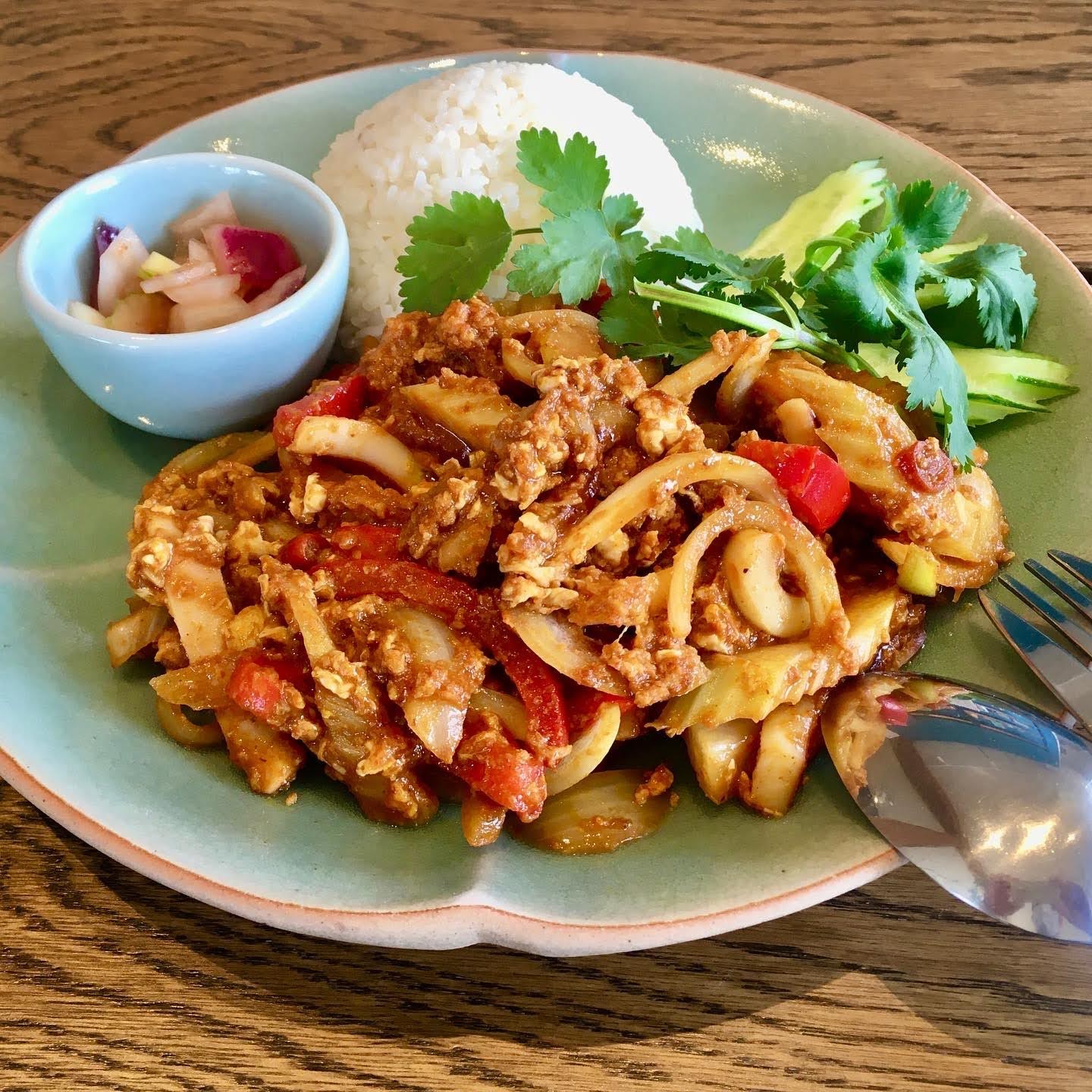 2021年7月の月替わりメニューはクワクリン(Kua Gling)。タイ南部のまさにローカルフードです。ソイソムのクワクリンの具材はツナ。豚の挽肉とかが多いみたいですが、ソイソムはツナにしてみました。